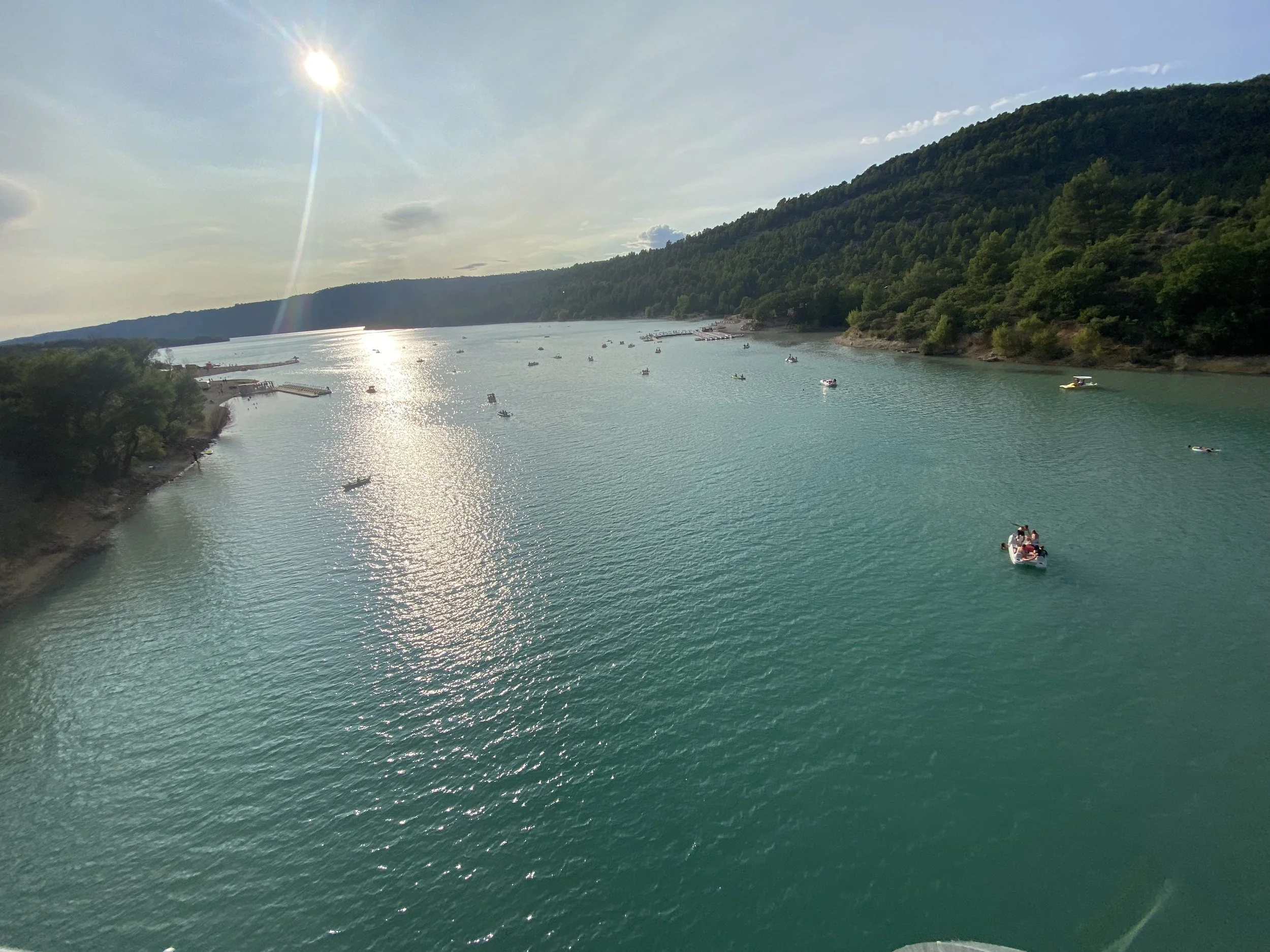 Bevor wir Moustiers-Sainte-Marie verließen, fuhren wir noch einmal zur Brücke und hielten dort an, um den Beginn der Schlucht und den Stausee zu betrachten. Die Brücke hatte auf beiden Seiten Gehwege, und wir nutzten die Gelegenheit, um Fotos von beiden Seiten zu machen. Der Blick auf die Schlucht und das klare Wasser war einfach traumhaft.