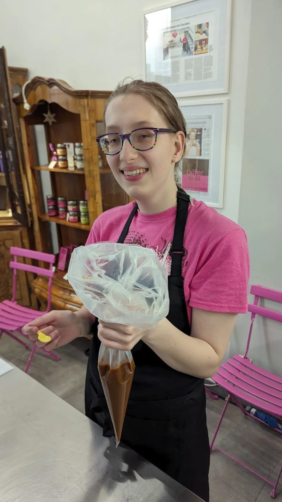 Mir hat der Kurs sehr gut gefallen und mir hat es auch viel Spaß gemacht, selber Pralinen herzustellen. Allerdings waren die Maschinen recht laut, sodass ich die Besitzerin nicht gut verstanden habe. Leider hat sie auch sehr schnell gesprochen, aber sie war sehr nett, freundlich und hilfsbereit. Meine Eltern haben versucht, mir alles mit Gebärden zu erklären. Ich würde mich sofort für den zweiten Kurs anmelden.