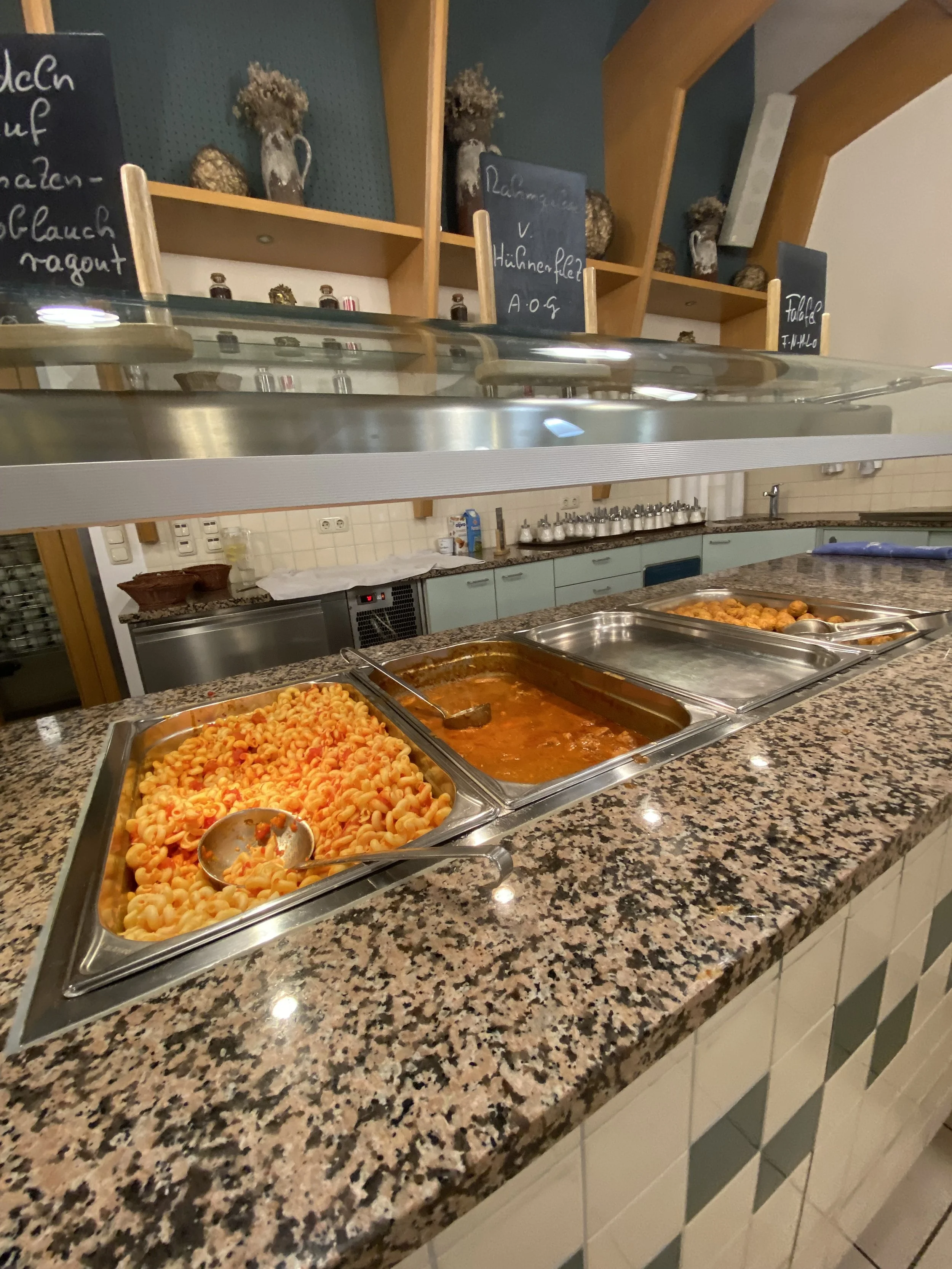 Neben dem großen Speisesaal gab es auch ein Sportcafé. Leider war nur ein Kellner oder eine Kellnerin da, und man musste lange auf seinen Kaffee warten, was etwas mühsam war.