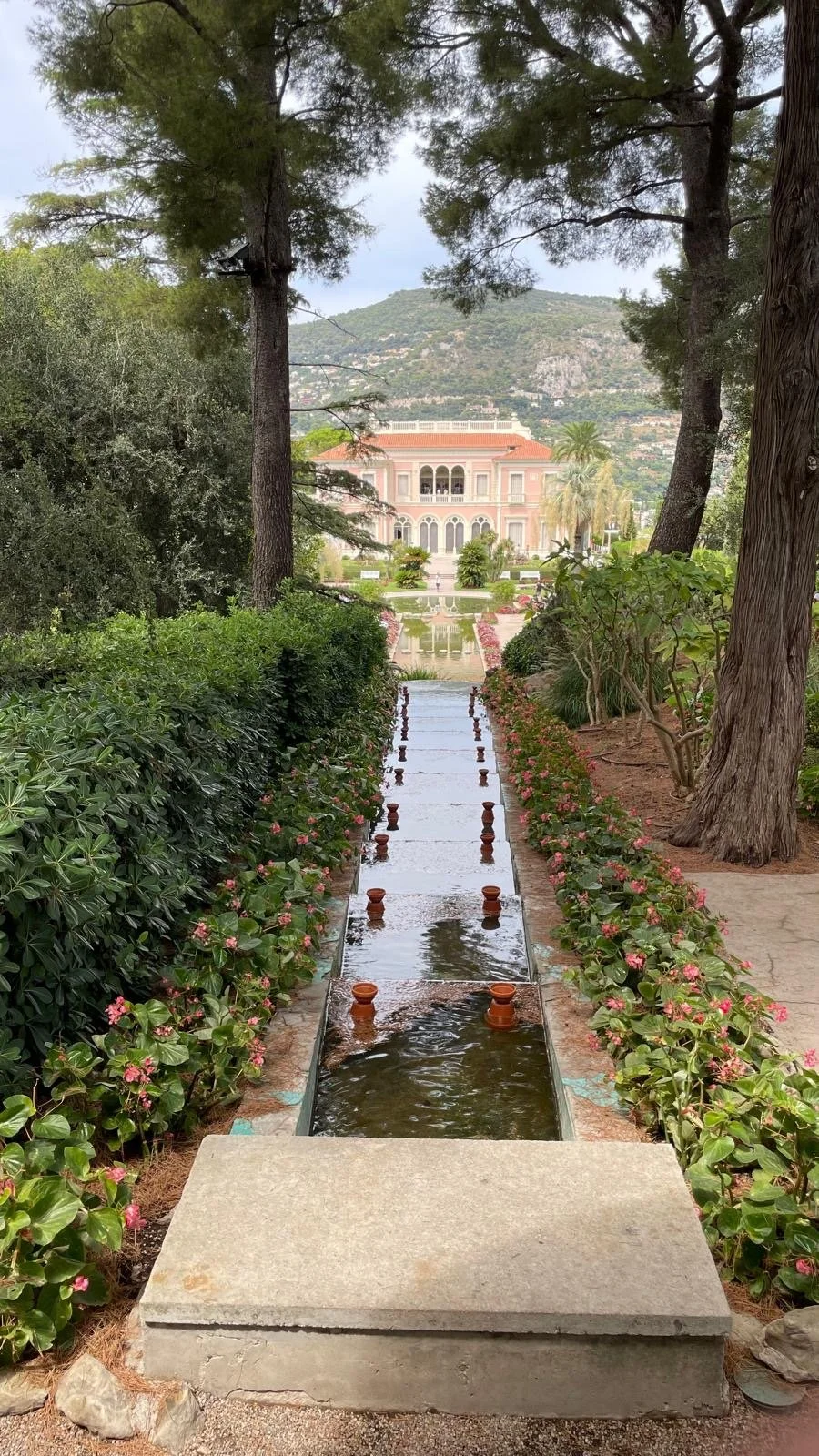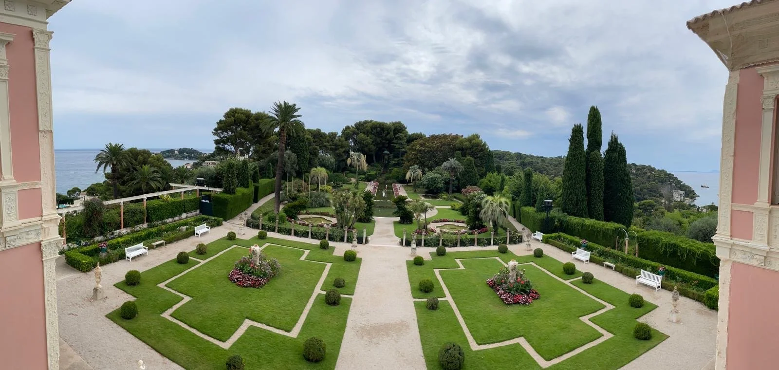 Das Wetter war besser und wir haben beschlossen zur Villa Ephrussi de Rothschild zu fahren, die sich in Cap Ferrat befindet. Die Villa ist im Renaissancestil gebaut, rosa und von einem traumhaften Garten umgeben. Dort haben wir zunächst die Villa, in der sich zwei Schlafzimmer, ein Esszimmer, ein Wohnzimmer und drei weitere Räume befinden und noch mit den originalen Möbeln aus dem Beginn des 20. Jahrhunderts ausgestattet sind, besichtigt. Ich fand es sehr interessant, wie die Möbel früher ausgesehen haben.