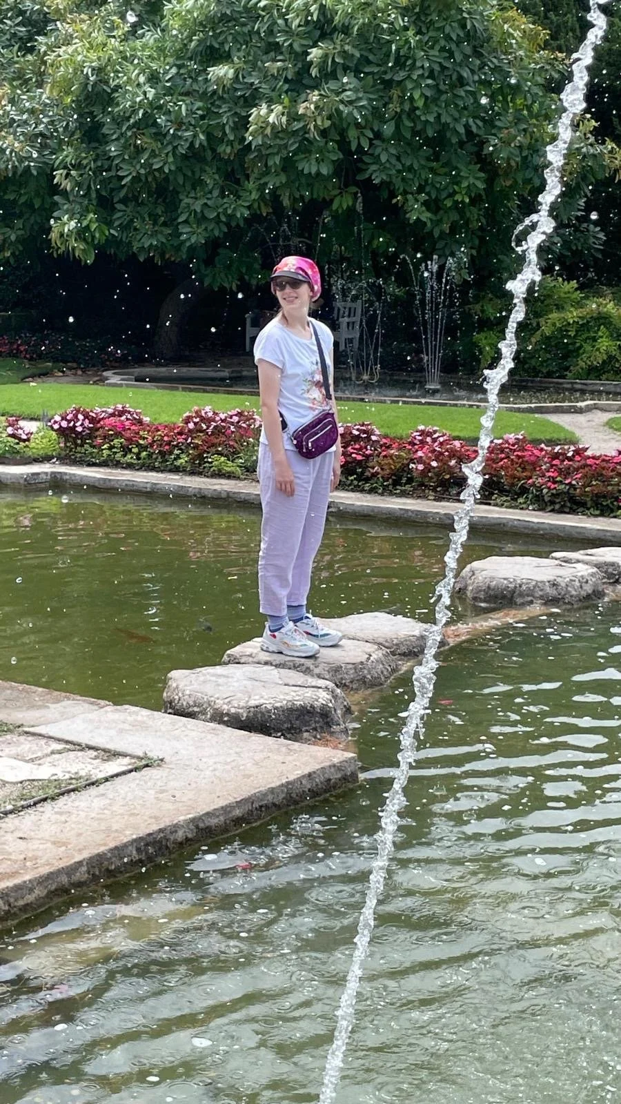 Am Ende des Rundgangs kamen wir zur Villa zurück, direkt davor gab es mehrere Teiche, aus dem Wasserfontänen passend zu klassischer Musik hochschossen. Das gefiel mir sehr gut!