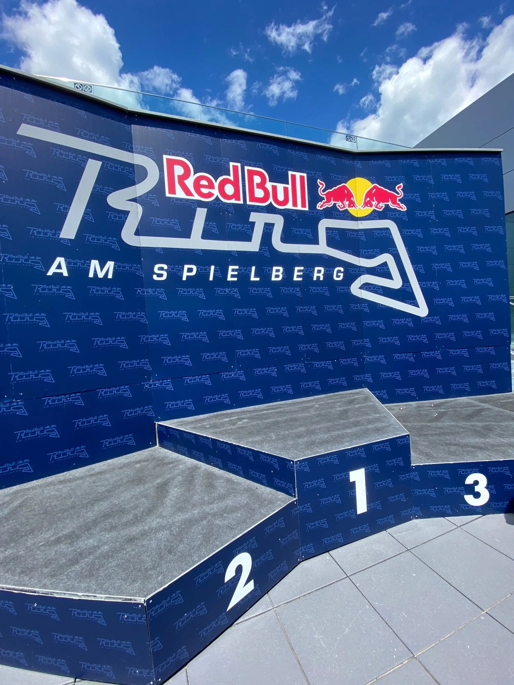 Am nächsten Tag konnten wir an einer Führung durch die Räume am Red Bull Ring teilnehmen. Zuerst haben wir einen Film über die Geschichte des Red Bull Rings, der frühe Österreichring hieß, angeschaut. Danach sind wir mit einem riesigen Lift zu den Veranstaltungsräumlichkeiten hinaufgefahren. Diese kann man buchen, Events durchführen und auch essen.