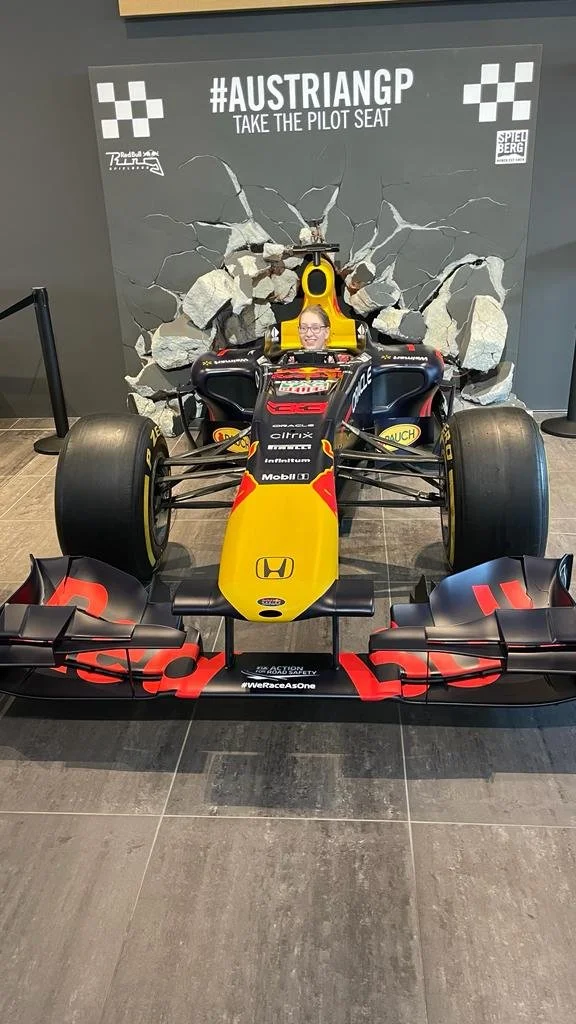 Anschließend sind wir wieder hinunter in den Eingangsbereich gegangen. Wir durften uns in eines der Formel 1 Autos setzen. Das habe ich natürlich sofort gemacht und ich habe gemerkt, wie eng so ein Formel 1 Auto wirklich ist. Das war sehr cool!