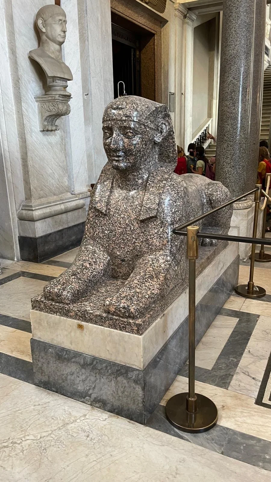 Zuerst sind wir einige Stufen hinauf gegangen und haben ägyptische Vasen und Sarkophage und verschiedene Figuren gesehen.
