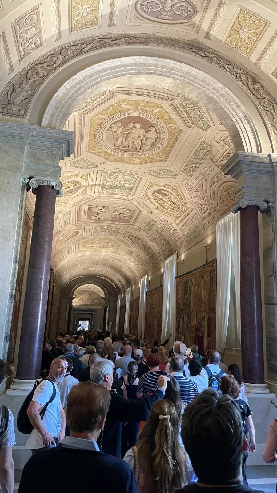 Dann kamen wir in einen Bereich mit vielen etruskischen Töpfen und Artefakten. Außerdem haben wir viele Gemälde und Skulpturen gesehen. Jeder Raum war mit wunderschönen Bemalungen verziert und ich war von den Wandfresken und ihrer Vielfalt sehr beeindruckt. Auch die riesigen Wandteppiche haben mir gut gefallen.