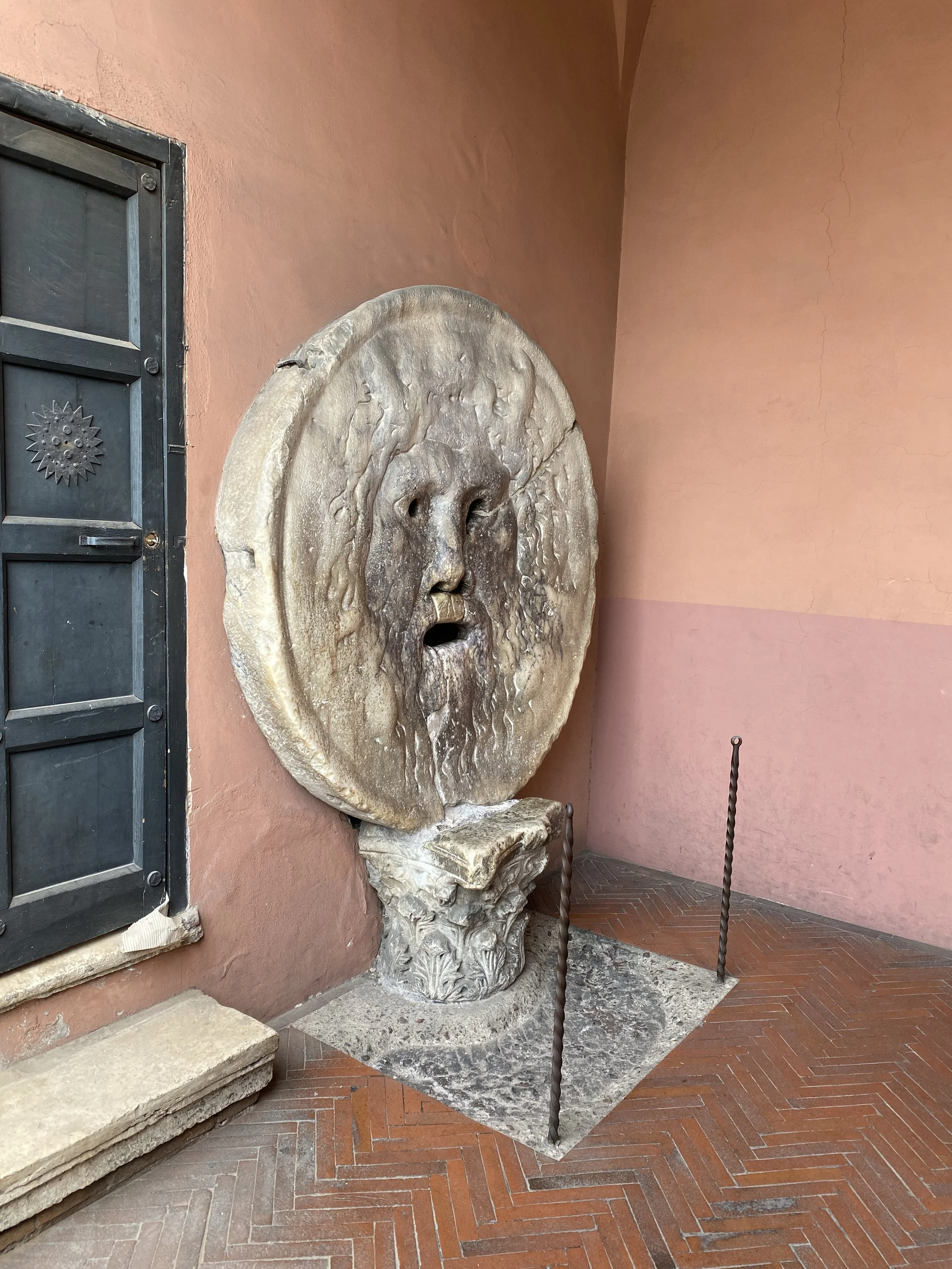 Wir waren schon ziemlich erschöpft und wollten langsam wieder ins Hotel, um uns auszurasten. Am Weg sind wir beim Bocca della Verita vorbeigekommen und haben aber nur einen Blick drauf geworfen, weil viele Touristen angestellt waren.