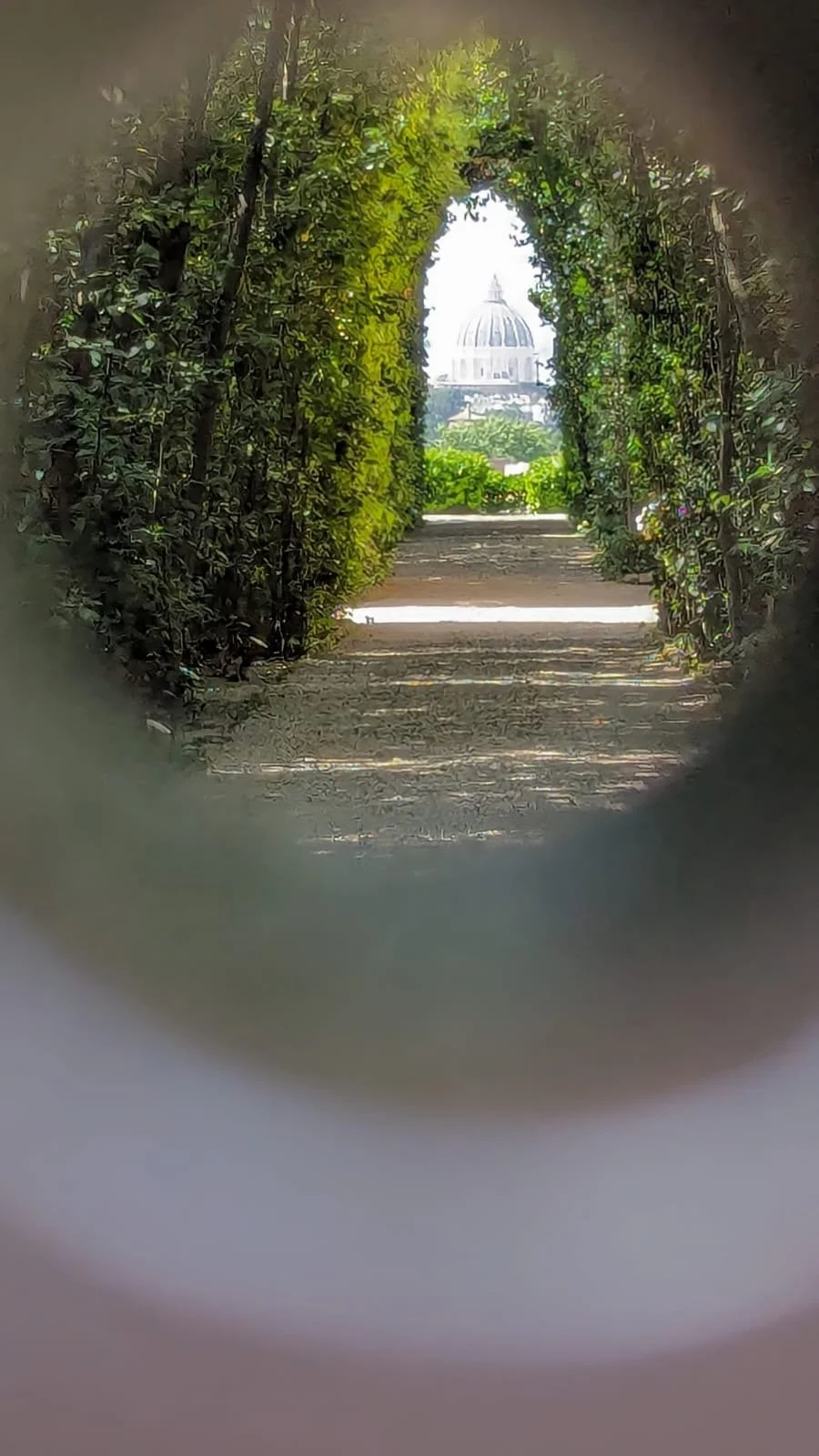 Als wir wieder unten waren, haben wir uns bei einem Mittagsessen gestärkt, bevor wir auf der anderen Seite des Tiber wieder den Hügel hinaufgegangen sind. Dieser heißt Aventin und oben gab es einen Orangengarten und schon wieder einige Kirchen, von denen wir aber nur eine angeschaut haben. Auch von hier hatte man einen schönen Blick über die Stadt. Das Besondere am Aventin ist aber der Garten der Botschaft des Malteserordens. Das Eingangstor wurde so gebaut, dass man den Petersdom sieht, wenn man durch das Schlüsselloch des Eingangstors schaut. In den Garten selber kann man nicht hinein.